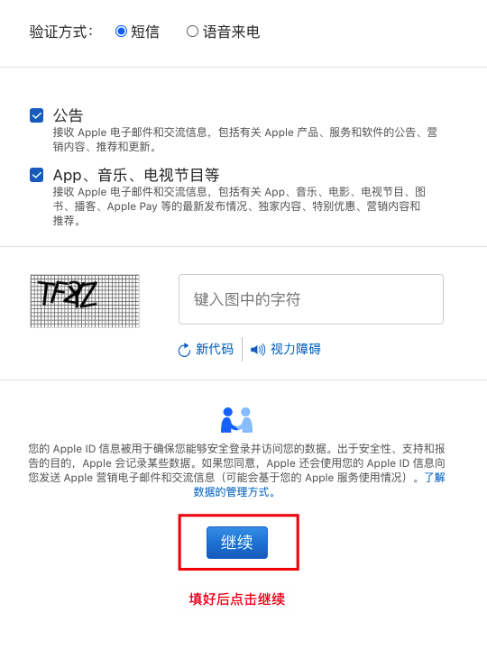 填写完所有的信息点击继续之后,这时会收到一封验证Apple ID的电子邮件,需要把邮箱验证码填写上去